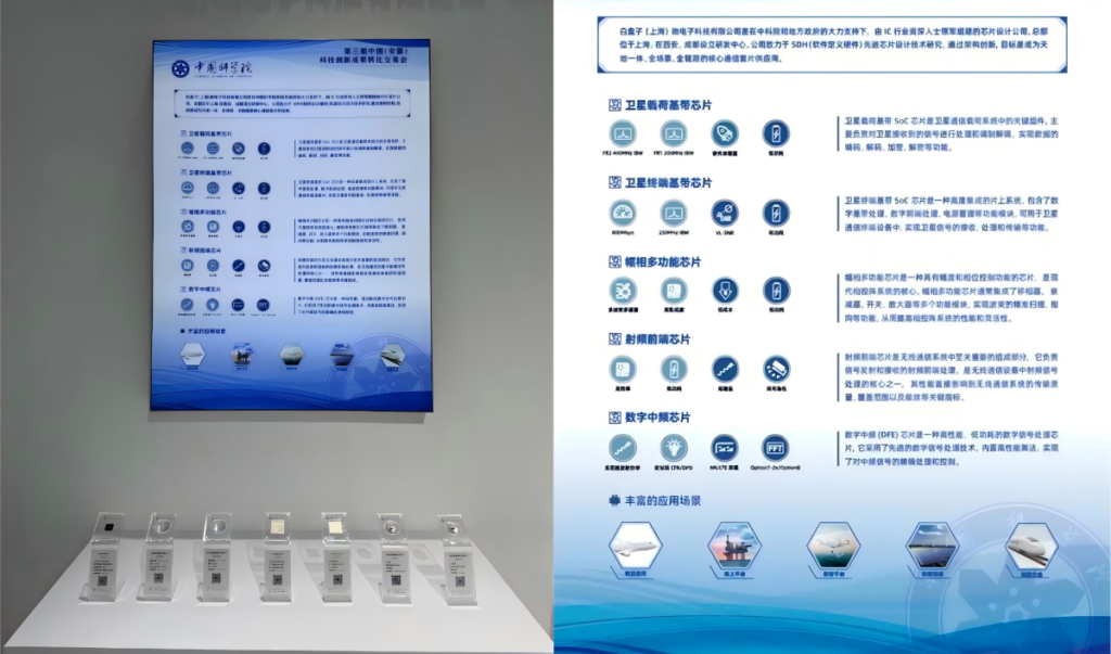 【白盒子亮相安徽科交会】加速成果转化,让通信芯片从代码走向千万终端 发布时间:2025/05/20 近日,第三届中国(安徽)科技创新成果转化交易会(以下简称“科交会”)在合肥开幕。白盒子(上海)微电子科技有限公司(以下简称白盒子)在科技引领展区展示了多款自主创新研发的天地一体、全场景、全链路核心芯片,向行业专家、与会人员等呈现了白盒子的最新创新成果,以科技创新成果,赋能生产生活。 白盒子的芯片和模组等产品,在卫星载荷和卫星终端领域拥有丰富的应用场景。在航空和低空领域可用于航空应用和低空平台;航海场景中可对海上平台进行检测,也可应用于远航船舶上,实现海上视频通话等;在工业与环境领域,广泛应用于环境监测、工业物联和应急通信;针对能源与交通领域,在新型能源、车联应用、陆路交通等构建多元化应用场景,实现现代化智能通信系统。 数字基带芯片 数字基带芯片是白盒子布局的核心芯片产品系列,分为卫星载荷基带芯片、卫星终端基带芯片。卫星载荷基带芯片支持400M超大带宽,支持5G NTN、超宽带基带信号处理、自定义波形,可应用于卫星载荷基带处理和 5G基站基带处理相关领域产品。卫星终端芯片支持250M大带宽,支持主流低轨卫星通信协议,支持协议/算法演进和自定义波形,可应用于高低轨卫星终端、车联应用等相关领域。 射频芯片 白盒子射频芯片产品包含幅相多功能芯片、射频前端芯片等。其中,高规格4波束幅相芯片,内部集成16路独立幅相控制通道,单芯片一体化融合了射频单元、逻辑控制、电源控制等功能,全映射网络架构支持单芯片灵活的收、发模式配置。低成本单波束收发集成幅相芯片,内部集成收、发各4路幅相控制通道,接口灵活、稳定性高、功耗极低,助力卫星终端的批量商用。践行国产化、低成本、低功耗、高集成的芯片设计思路,适配卫星载荷、卫星终端、行业雷达等多样化的应用场景。 数字中频芯片 白盒子自研的新一代数字中频(DFE)芯片,支持CPRI级联、高性能DPD/CFR等特性方案,使其在宏基站、直放站等场景有突出优势,已在国内外通信客户网络中开启商用部署。该芯片支持 DPD / CFR / PAP / FDR / VSWR / AGC Comp / 节能等关键特性,功能与性能达到业界先进水平,助力客户从一体化站、分布式皮站等形态顺利向宏基站、直放站、卫星地面站等多种形态演进,极大地降低了客户产品升级成本和风险。创新永无止境,转化成就未来。本届科交会聚焦成果供给、产业需求、生态赋能三大维度,为白盒子提供了展示技术实力、链接产业资源的战略机遇,未来公司将继续聚焦无线通信领域,秉持“自主创新、开放共赢”的理念,重点突破高规格、低成本、可编程的芯片架构设计,为终端厂商提供Turnkey解决方案,助力天地一体卫星网络终端的广泛应用,构建自主可控的芯片产业生态。 关于白盒子微电子白盒子(上海)微电子科技有限公司,是在上海市政府大力支持下,由IC行业资深人士领军组建的高端芯片公司,总部位于上海,已在西安、成都建立研发中心。公司致力于SDH(软件定义硬件)先进芯片设计技术研究,通过架构创新,成为高性能大算力基带SoC领域的创新者和领航者。白盒寓意开放协同,助力生态建设,赋能智慧通信。